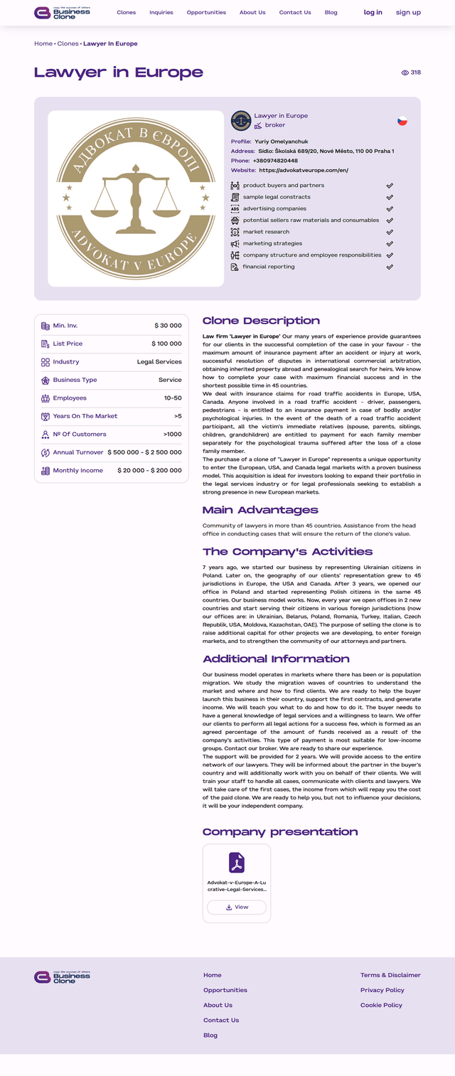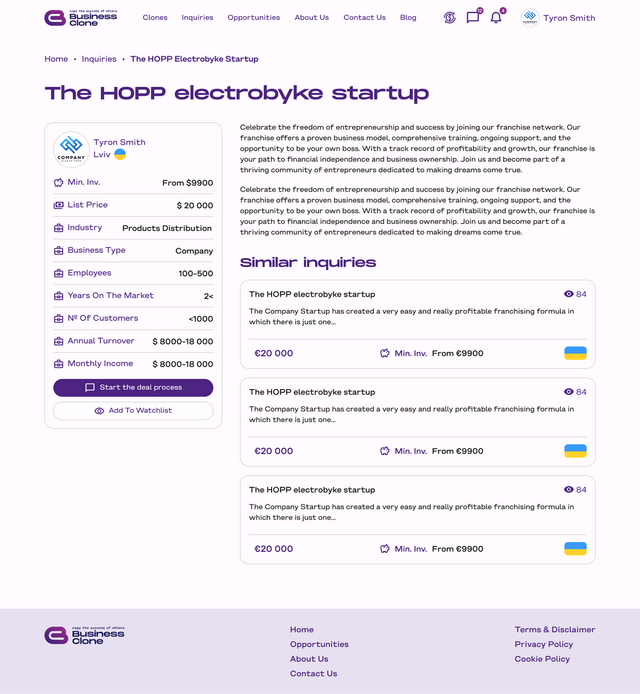 Або ж підприємець знаходить запит на клонування, що за вимогами - відповідає його бізнесу, він може переглянути таку інформацію: